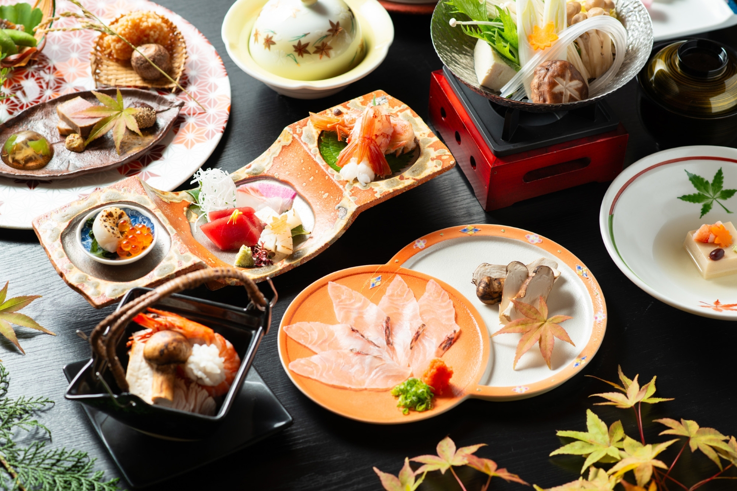 秋の味覚、紅葉鯛と松茸を愉しむ香り豊かなしゃぶしゃぶ。