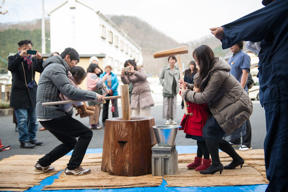 今年の三が日も季譜の里では新春餅つき大会を開催いたしました☆ この度もたくさんの方にご参加いただきました!本当にありがとうございます!本年は餅つき部隊の男手もちょっぴり不足(?)ということで、小さなお子様からお父様お母様まで、たくさんの方にお餅をついていただきました。