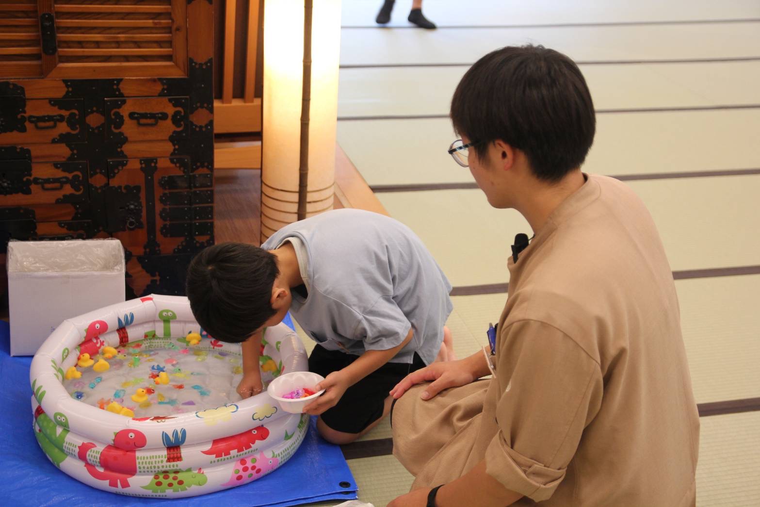 浴衣姿のお子様たちは、夢中でおもちゃをすくいながら大はしゃぎ。ご家族の皆さまも笑顔で見守り、和やかな雰囲気に包まれました。かき氷を頬張る姿も、夏ならではの風景です。