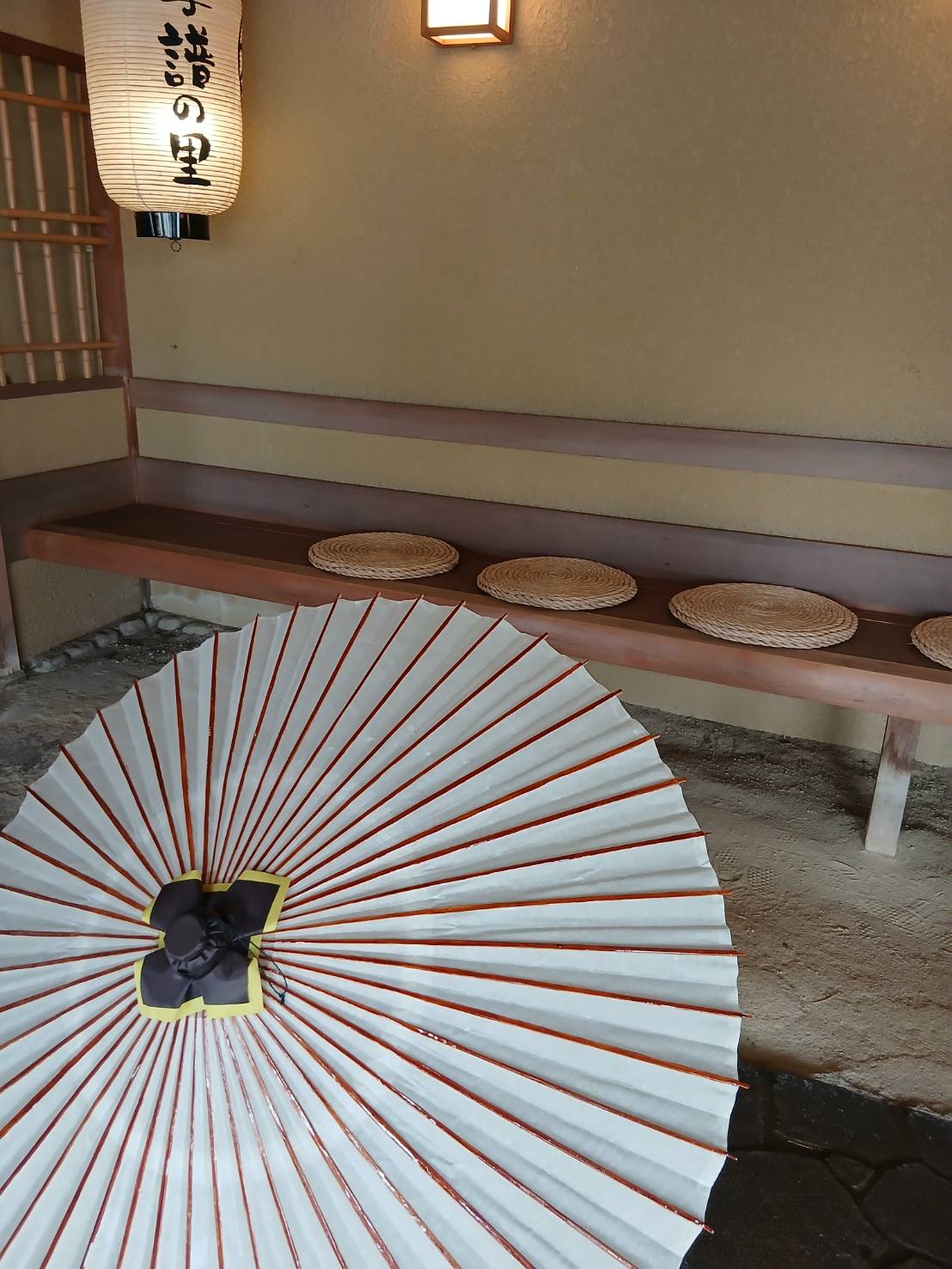 玄関にご用意している和傘を新調いたしました。和紙ならではの風合いが美しく、玄関のしつらえにもよく映えます。