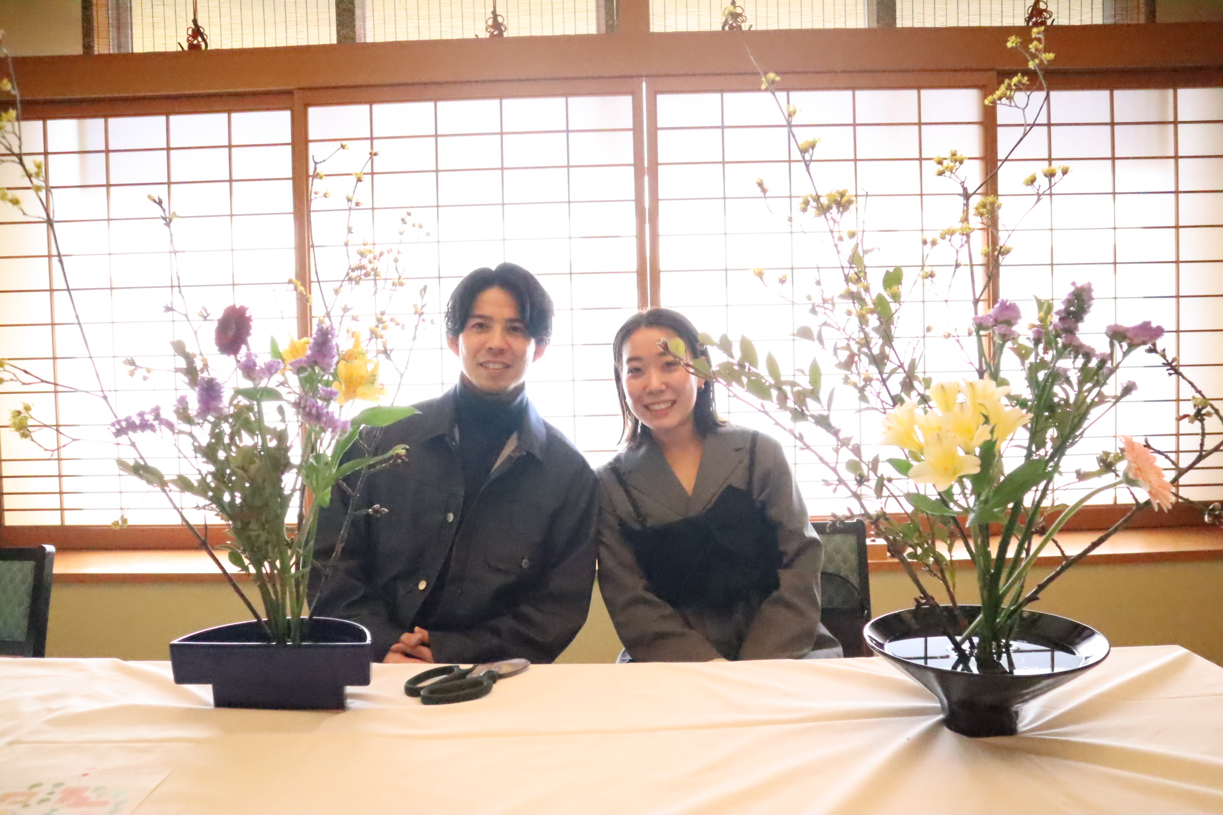 同じ空間で一輪一枝に向き合う姿は、