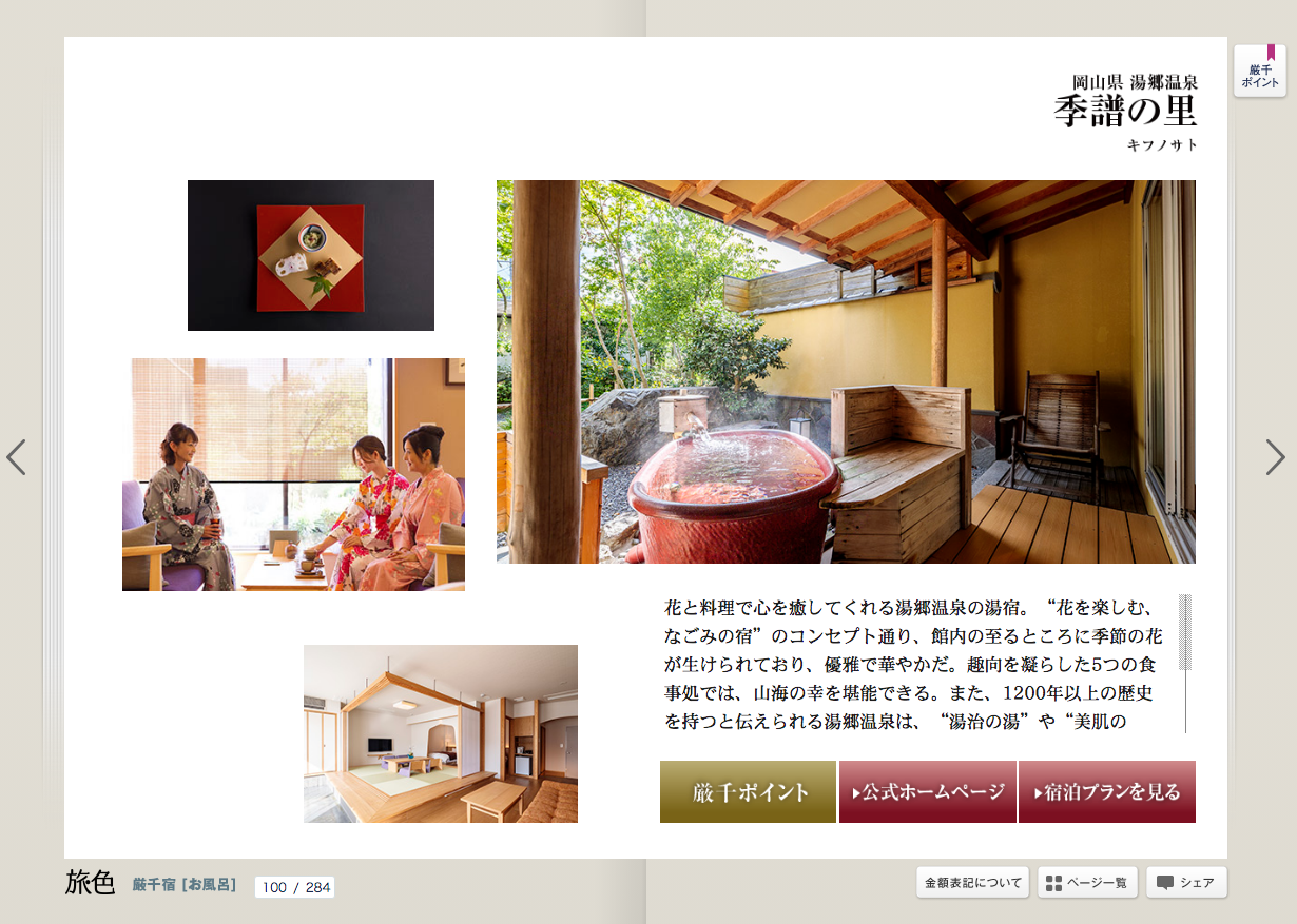 女性向けの旅サイト『旅色』にご掲載いただきました。春のご紹介では、温泉と客室を中心に季譜の里の魅力をご紹介いただいています。WEBサイト内の旅のおすすめ情報も魅力的です。ぜひ、一度ご覧になってやってください☆